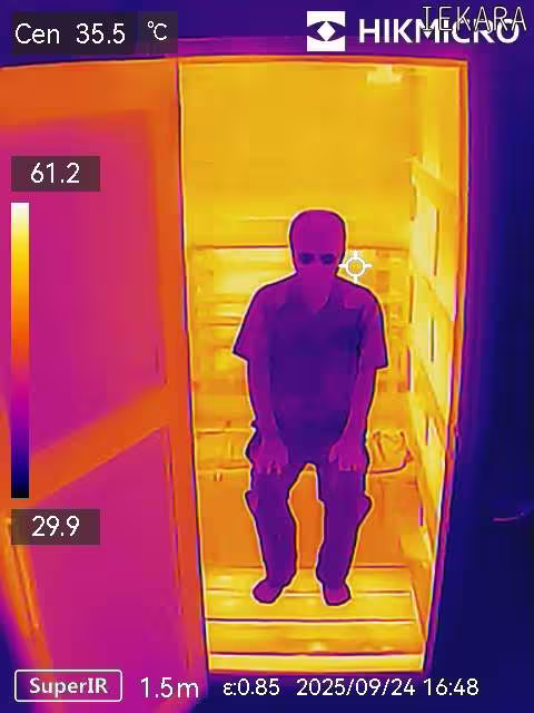 35℃~45℃で20分、木の香に包まれた遠赤浴で体を芯から温め血行を促進、心地よい発汗での心身リラックス効果や、保温効果を楽しみます。(ボックス型・ドーム型ともに会社内にて体感できます)
